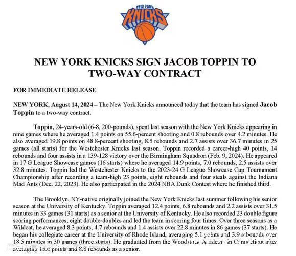 亚特兰大老鹰队在新赛季开局阶段做出了一项引人关注的人事调整。根据球队官方消息,球队已经正式裁掉与其签订双向合同的前锋雅各布-托平,这一决定不仅意味着这位24岁的前锋将暂时告别老鹰阵容,也在一定程度上折